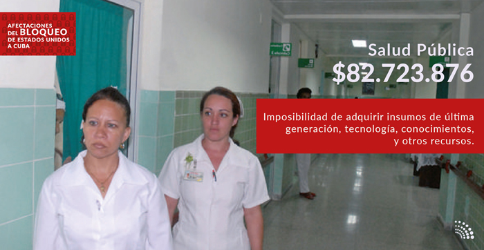 Las principales afectaciones causadas por la aplicación de esa política contra el pueblo cubano están en las dificultades para adquirir en los mercados estadounidenses medicamentos, reactivos, piezas de repuesto para equipos de diagnóstico y tratamiento, instrumental médico, y otros insumos necesarios para el funcionamiento del sector.