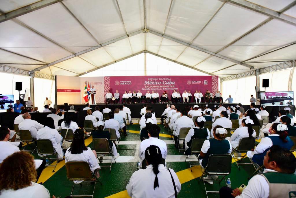 ?| Los presidentes @DiazCanelB y @lopezobrador_ participan #AHORA en la Reunión Bilateral #México–#Cuba Salud IMSS Bienestar, junto a medio centenar de colaboradores cubanos de la Salud que trabajan en Campeche.