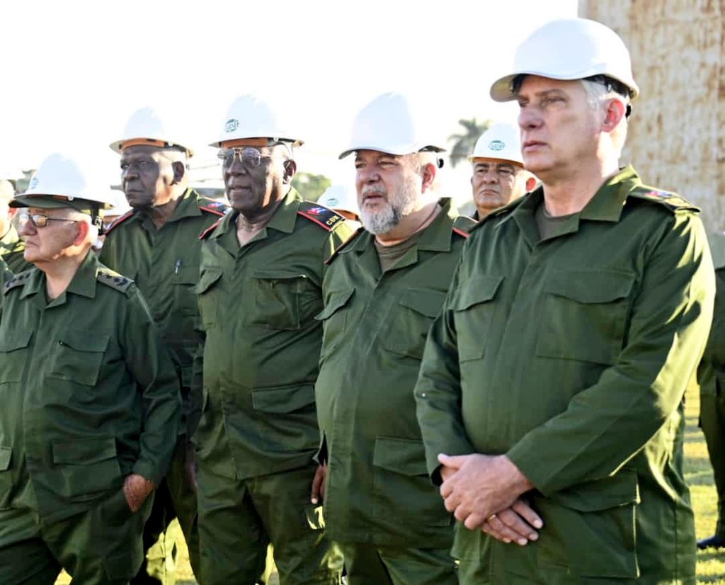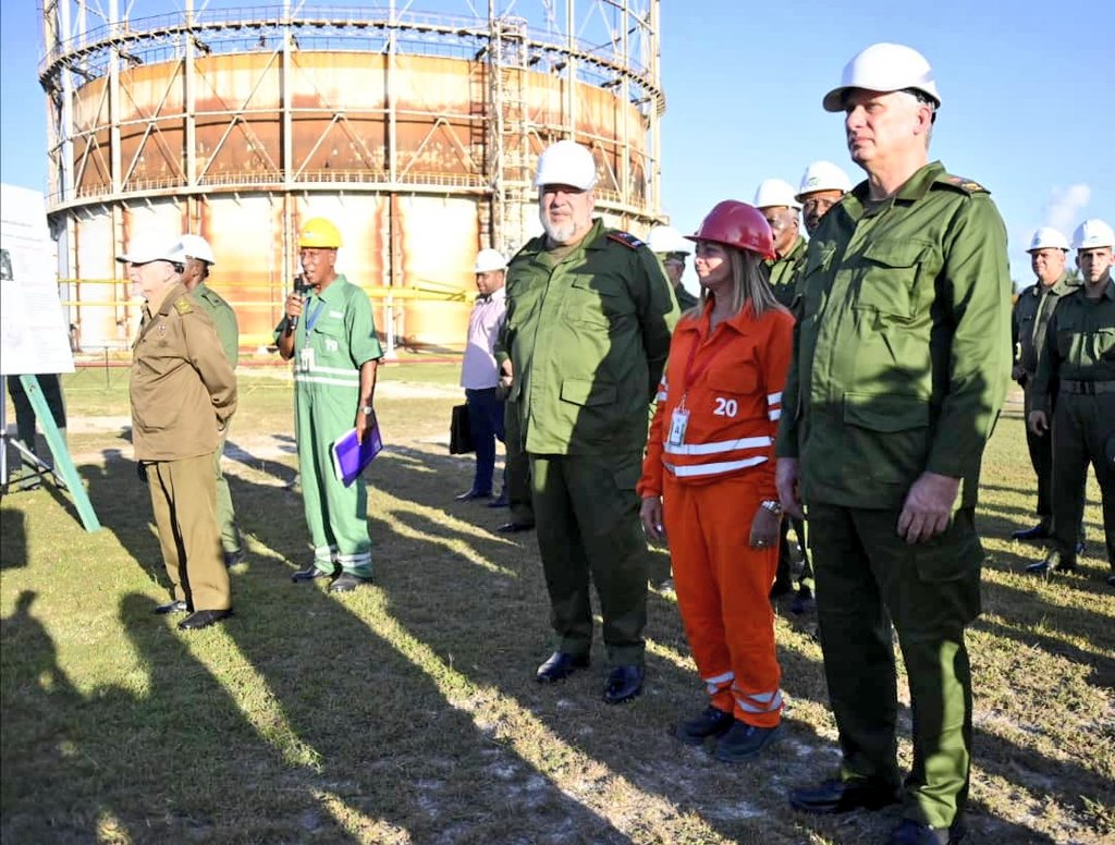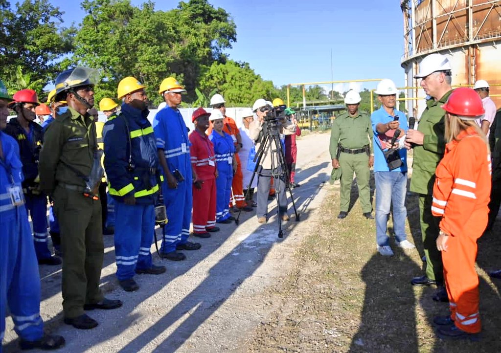 La Habana, Cuba. – El presidente del Consejo de Defensa Nacional, Miguel Díaz-Canel Bermúdez, asistió este domingo a un ejercicio demostrativo de escape de gas con balas GLP con peligro de explosión a la población adyacente, en la Empresa de Gas Manufacturado Mario Fortuny, del municipio capitalino de Marianao.
