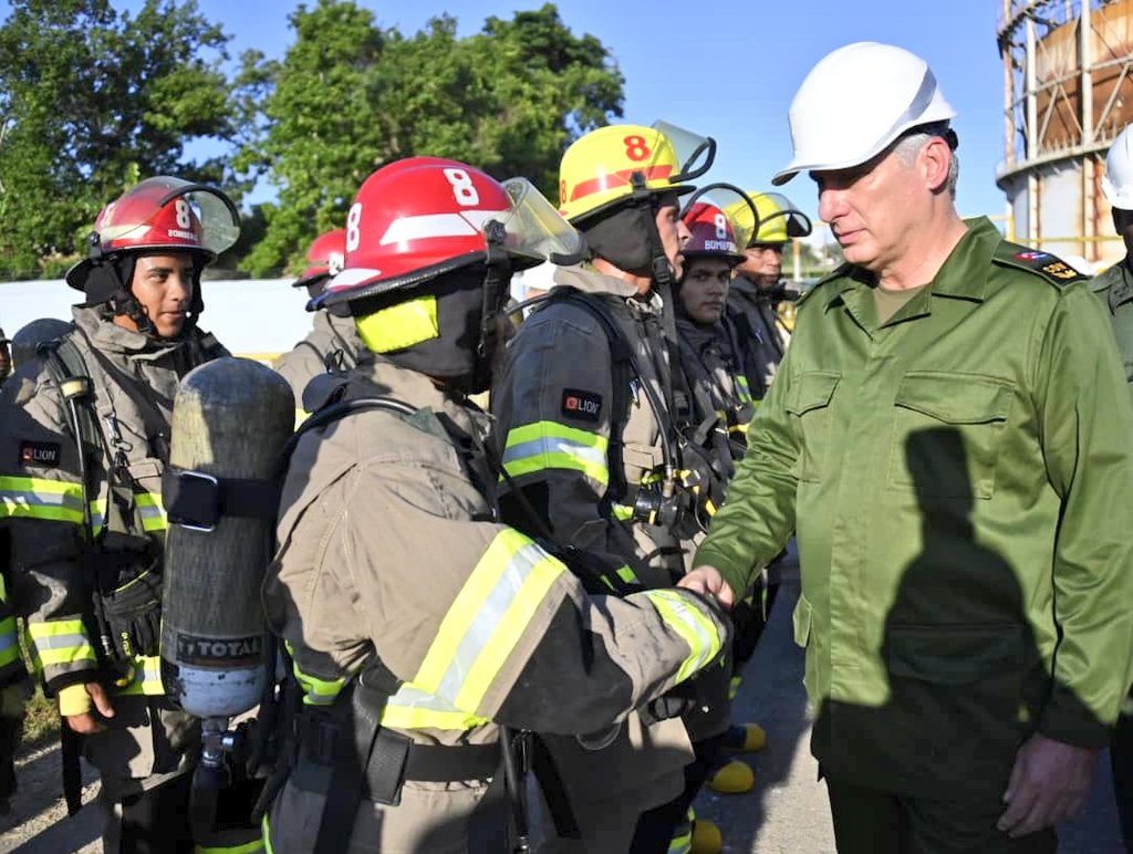 Díaz-Canel al concluir el simulacro en el que participaron el Cuerpo de Bomberos de Cuba y la Cruz Roja, manifestó  que es un ejercicio donde hay un nivel  de organización y de preparación, al tiempo que transmitió una felicitación por contribuir al perfeccionamiento de la Defensa Civil que ha patentizado que es robusta y consolidada.