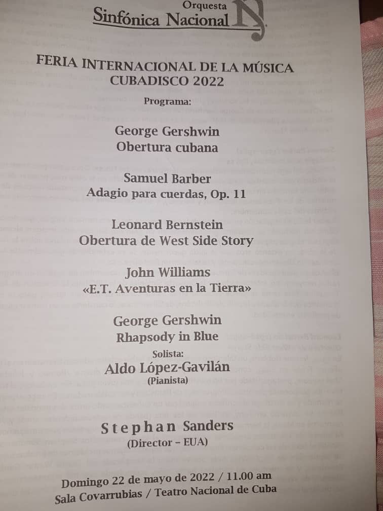 La primera semana de la Feria Internacional de la Música Cubadisco 2022 concluye hoy con un concierto de la Orquesta Sinfónica Nacional, dirigida en esta ocasión por el maestro norteamericano Stefan Sanders, con el pianista Aldo López Gavilán como invitado.