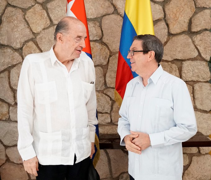 La Habana, Cuba. – El ministro de Relaciones Exteriores de Cuba, Bruno Rodríguez Parrilla, recibió este jueves a una delegación del gobierno de Colombia que viajó a La Habana para iniciar acercamientos con el Ejército de Liberación Nacional, para reanudar los diálogos de paz.