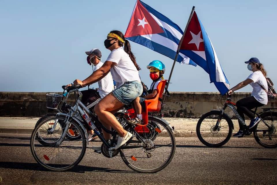 En sus bicicletas y con banderas cubanas y carteles, Andhra Cartaya y su mamá Tamara Dovale aseguraron a Radio Reloj que participaron en la Caravana contra el bloqueo porque ese cerco es el principal obstáculo para nuestro desarrollo.