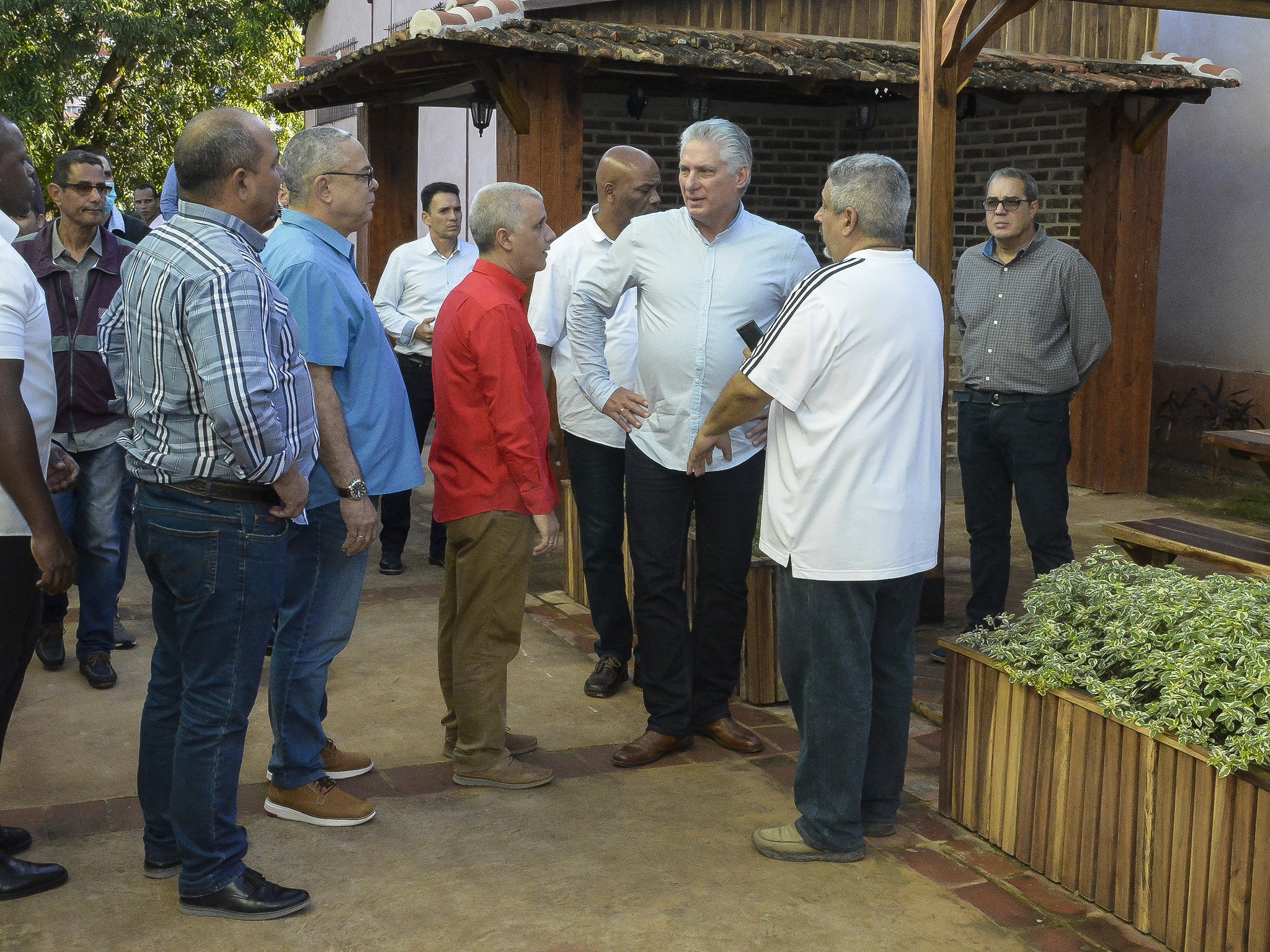 Junto al jefe de Estado, estuvieron la ministra de Educación, Ena Elsa Velázquez Cobiella, el primer secretario del Comité Provincial del Partido, Luis Antonio Torres Iríbar, y el gobernador de la ciudad, Reinaldo García Zapata.
