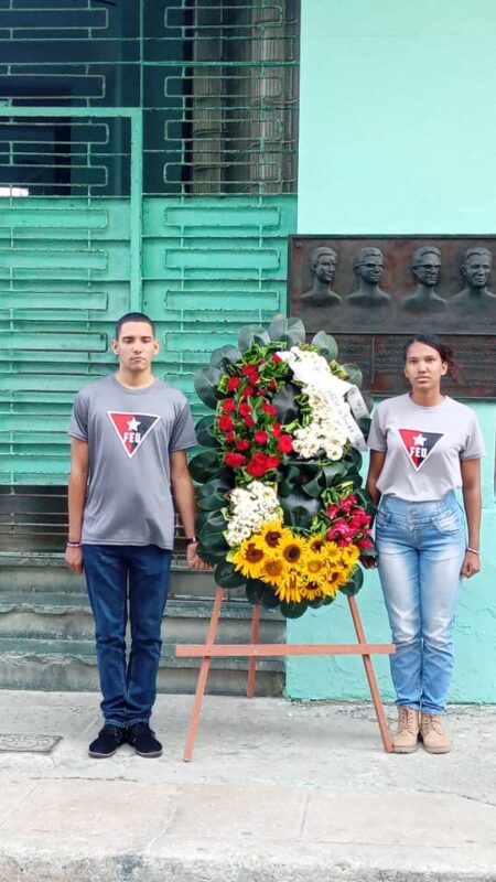 Una  ofrenda floral a nombre del estudiantado cubano fue colocada en el mismo sitio y dónde se rememoro  que Fructuoso Rodríguez, Joe Wetbrook y Juan Pedro Carbo Servía,  habían participado en toma de Radio Reloj y el asalto al Palacio Presidencial, el 13 de marzo de 1957.