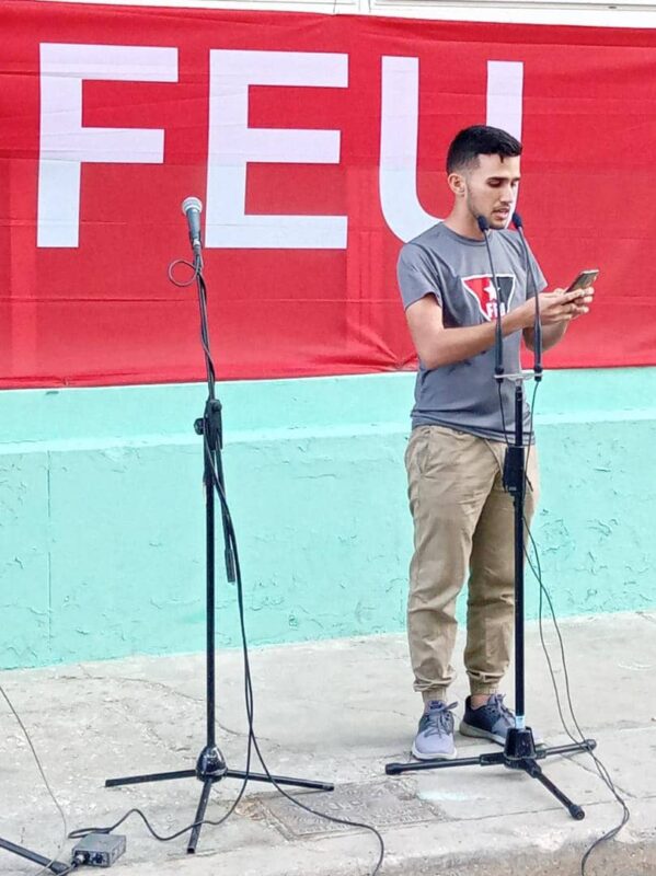 Julio Emilio Morejón Pérez, integrante del Consejo de Estado y presidente de la Federación Estudiantil Universitaria ( FEU) en las palabra centrales del tributo reafirmó el compromiso del estudiantado cubano  con la sangre derramada  y las vidas ofrendadas.