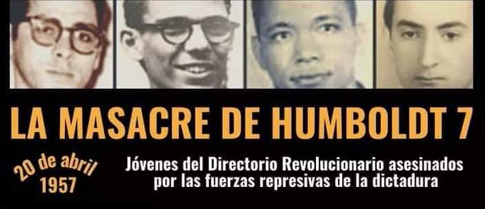 La Habana, Cuba. – En un acto marcado por el dolor y el reconocimiento al sacrificio, se recordó este jueves en la Habana, el aniversario 66 de la masacre de cuatro jóvenes revolucionarios por esbirros de la dictadura de Batista frente al edificio que lleva  el número 7 en la calle Humboldt, en Centro Habana.
