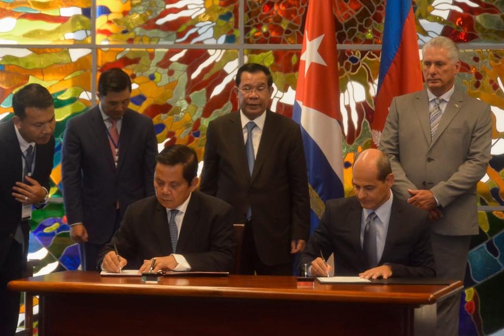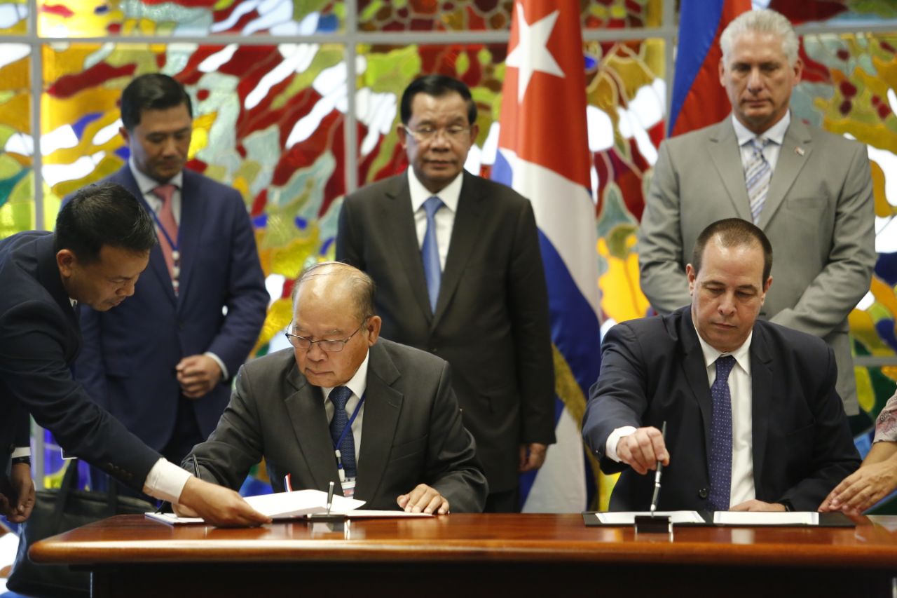 El presidente de Cuba, Miguel Díaz-Canel, y el primer ministro del Reino de Cambodia, Samdech Techo Hun Sen, de visita oficial en la Isla, intervinieron en la firma de acuerdos asociados a salud, deporte y relaciones internacionales.