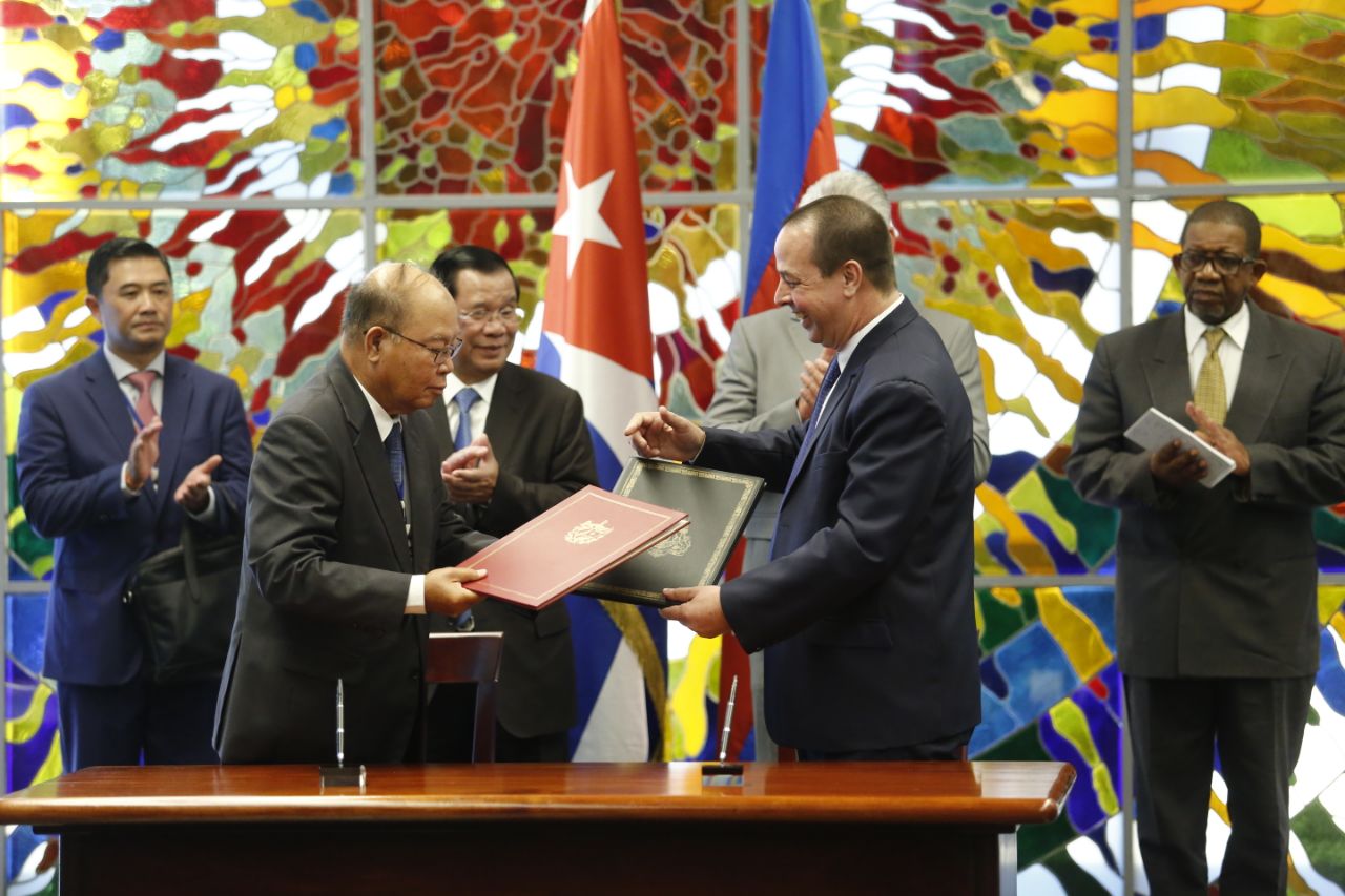 #Cuba ?? y #Cambodia ?? firmaron importantes acuerdos en materia de salud, educación e intercambio entre las academias de formación diplomática de ambos países. pic.twitter.com/UaLrivCZ1I