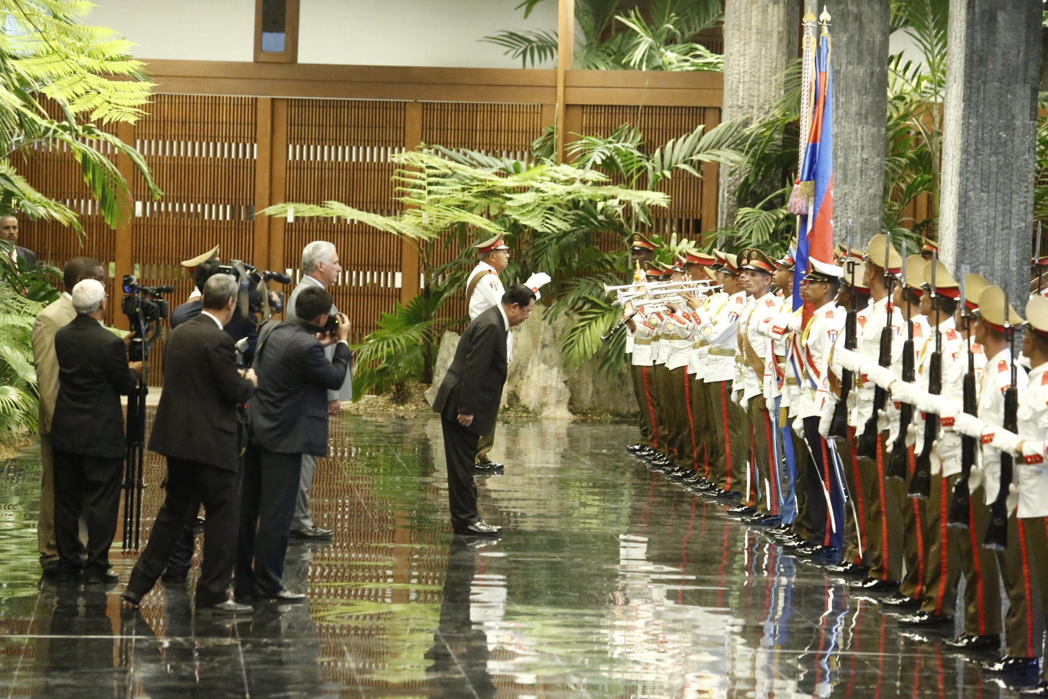 La Habana, Cuba. – El Primer Secretario del Comité Central del Partido y presidente de Cuba, Miguel Díaz-Canel Bermúdez, recibió hoy en el Palacio de la Revolución de La Habana al primer ministro del Reino de Cambodia, Samdech Techo Hun Sen, en visita oficial a la Isla hasta mañana.