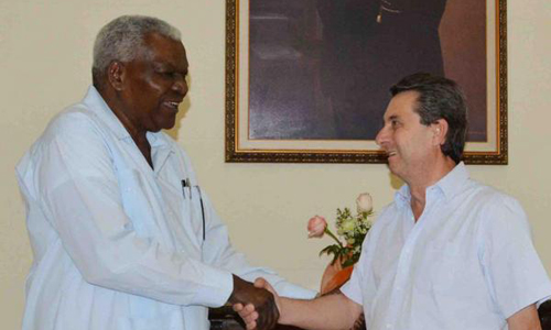 La Habana, Cuba.- José Luis Centella, secretario general del Partido Comunista de España intercambió este viernes con Esteban Lazo Hernández, presidente de la Asamblea Nacional del Poder Popular, durante su visita al Capitolio habanero.
