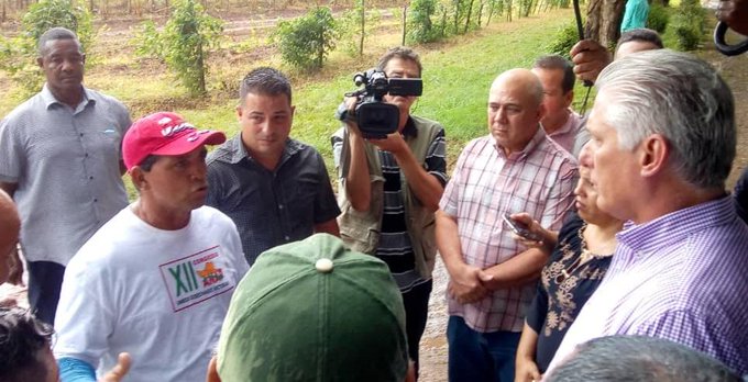 Díaz-Canel en la universidad Jesús Montané dialogó acerca de la misión a desempeñar ese centro en la Estrategia de Desarrollo Local de esa ínsula, también conversó con el productor Euclides Beirut sobre intercalamiento y producción orgánica.