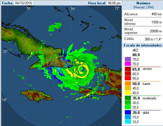A las seis de la tarde de hoy el centro de Matthew fue estimado por las imágenes del radar de la Gran Piedra, en los 19.9 grados de latitud norte y los 74.3 grados de longitud oeste, posición que lo sitúa a unos 30 kilómetros de punta Caleta y a 45 kilómetros al sursuroeste de Punta de Maisí.