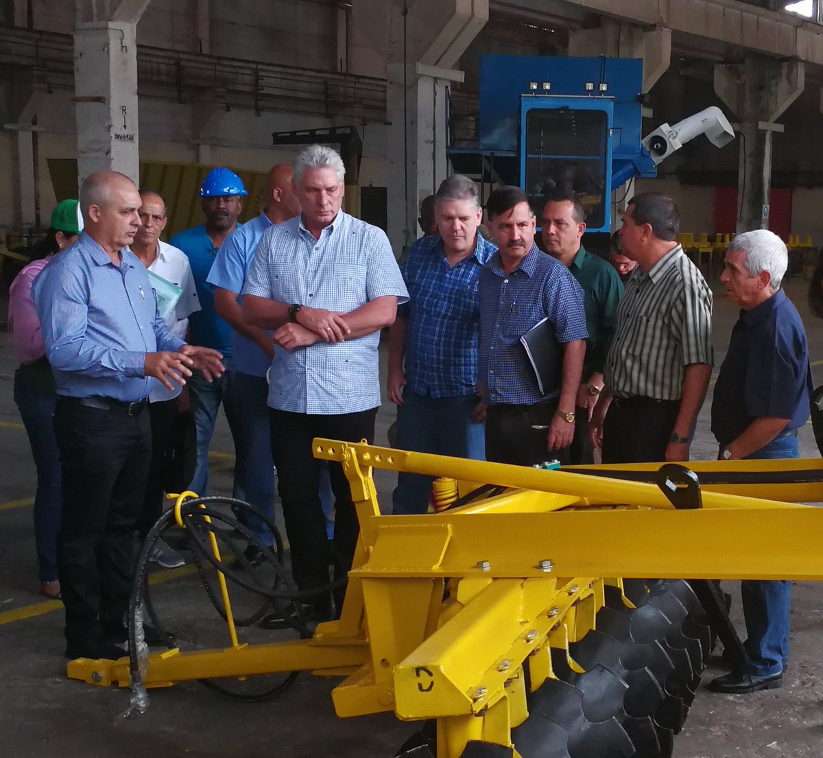 Primeramente, el Presidente cubano visitó la Empresa de Combinadas cañeras 60 Aniversario de la Revolución de Octubre; la fábrica Héroes del 26 de Julio, productora de implementos agrícolas; la Empresa de productos Lácteos; y una minindustria.