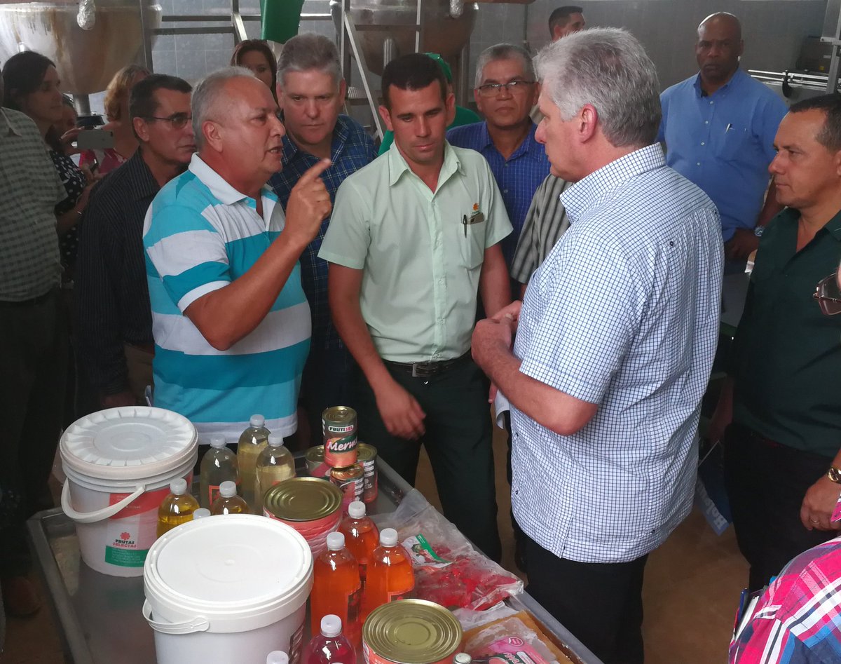 En la Mini-Industria de Frutas Selectas, el mandatario cubano se refirió a la importancia de las iniciativas de esa entidad para contribuir con la alimentación de los cubanos, una de las prioridades del gobierno de la Isla.