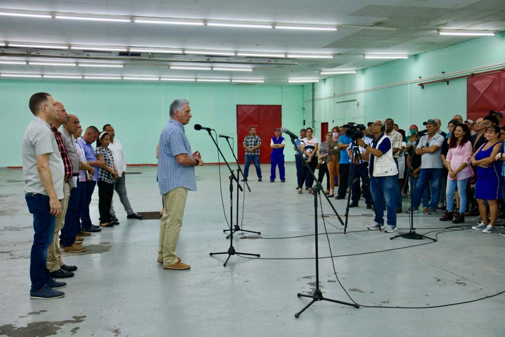 Villa Clara, Cuba. – Miguel Díaz-Canel Bermúdez, primer secretario del Comité Central del Partido y presidente de Cuba, en su condición de candidato a diputado al Parlamento por el municipio de Santa Clara, intercambió en la mañana de este jueves con trabajadores de la Empresa Textil Desembarco del Granma.
