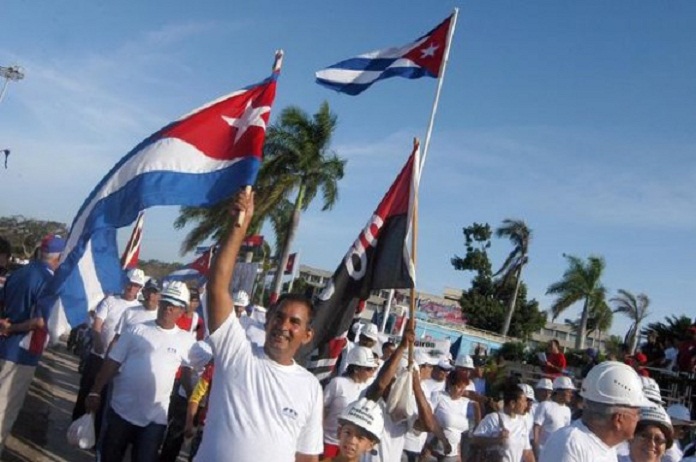 Banderas cubanas, consignas y carteles de apoyo al socialismo y de respaldo al ideario del Comandante en Jefe Fidel Castro y a la unidad de Nuestra América, portaron los integrantes de los 19 sindicatos en el territorio.