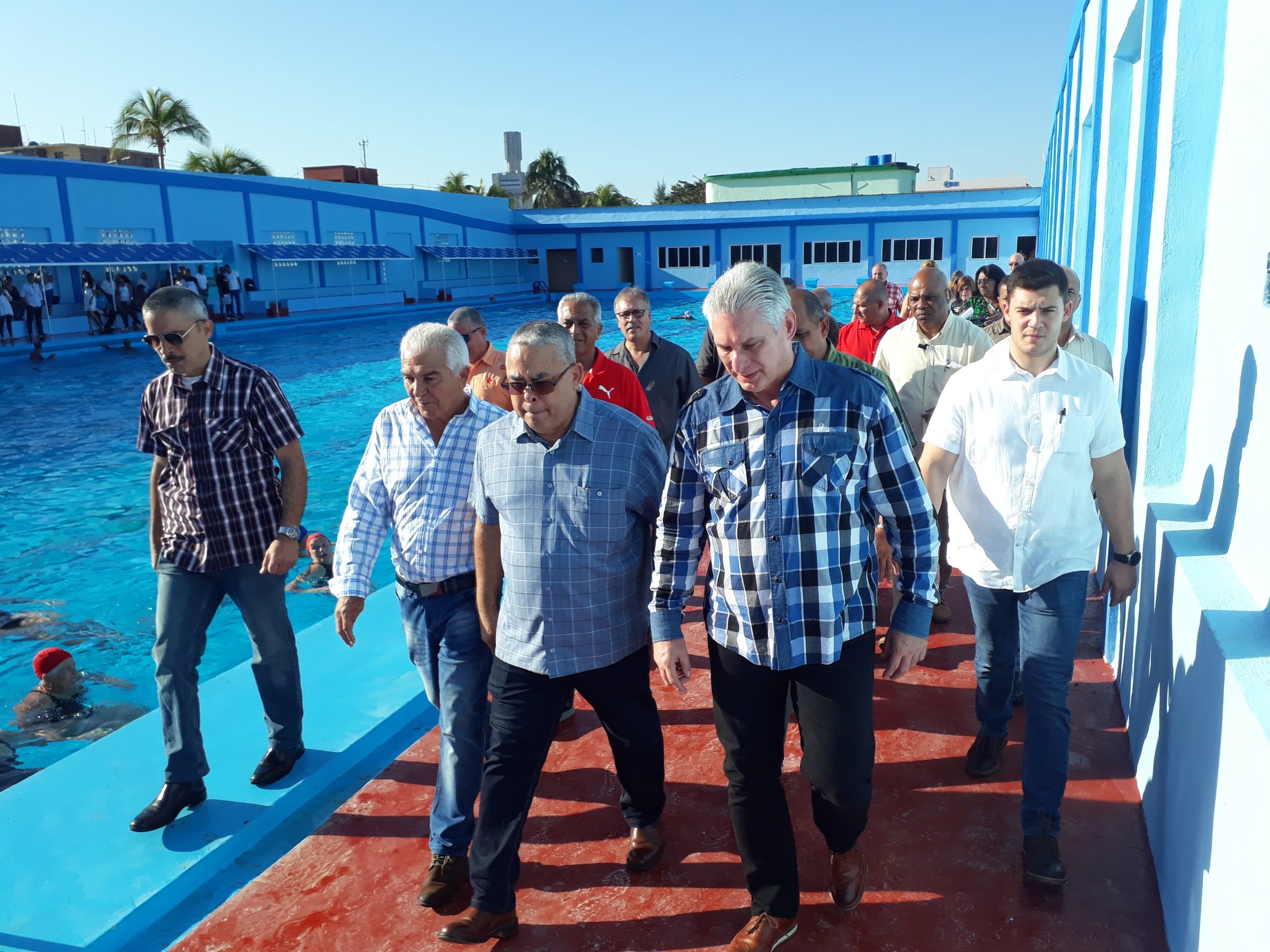 Díaz-Canel visitó el Complejo Recreativo Marcelo Salado, que luego de casi seis meses de fuertes labores constructivas, recobró su esplendor, perdido tras años de deterioro y la estocada final del huracán Irma en 2017.
