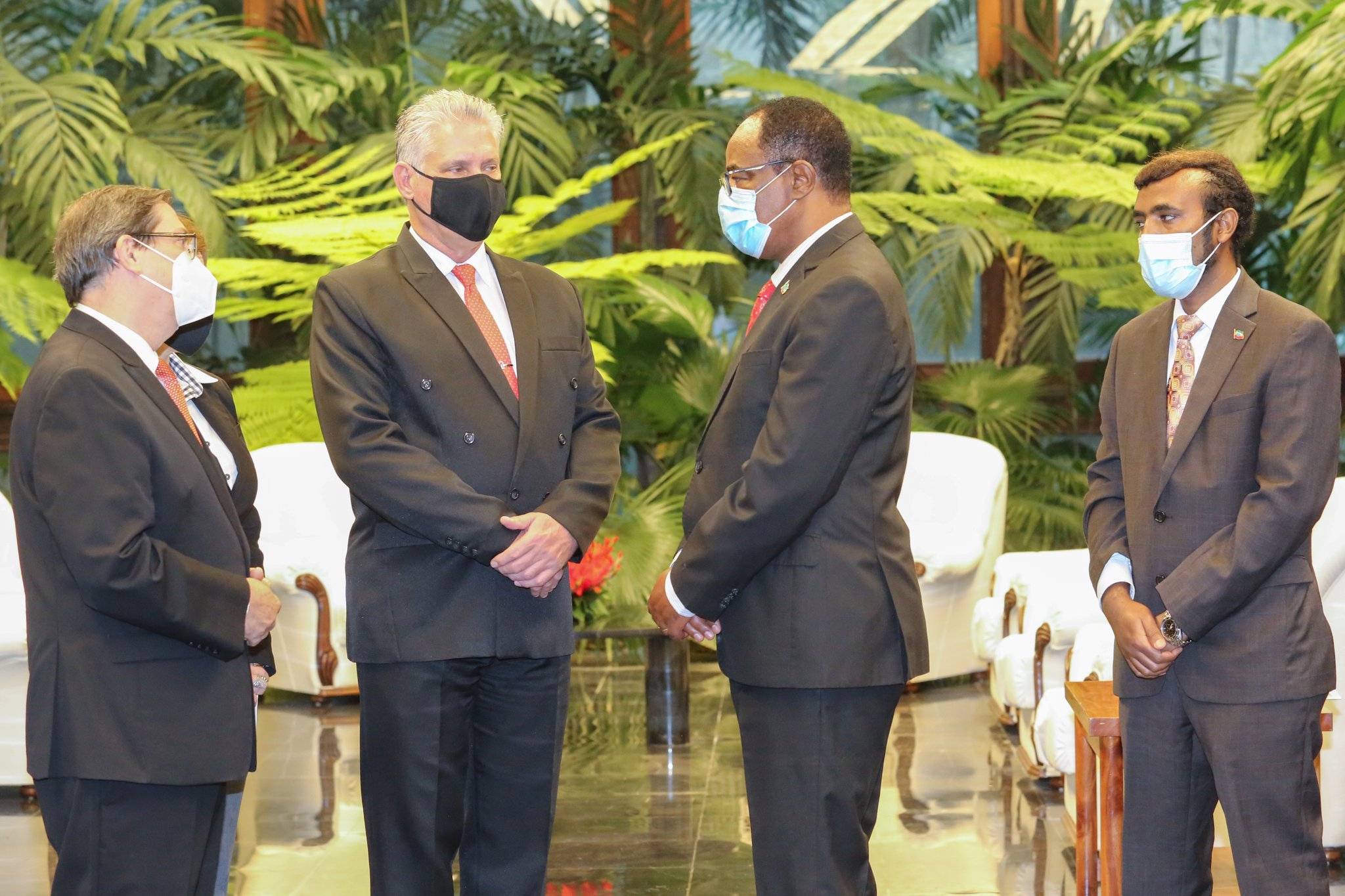La Habana, Cuba. – El presidente de Cuba, Miguel Díaz-Canel Bermúdez recibió, acompañado por el ministro de Relaciones Exteriores, Bruno Rodríguez Parrilla, en audiencia solemne a Regine Lamur, embajadora de la República de Haití; a Ángel Martín, embajador del Reino de España; Boniface Vignon, embajador de la República de Benin; y a María de Lourdes Batista, embajadora de la República de Guinea-Bissau.