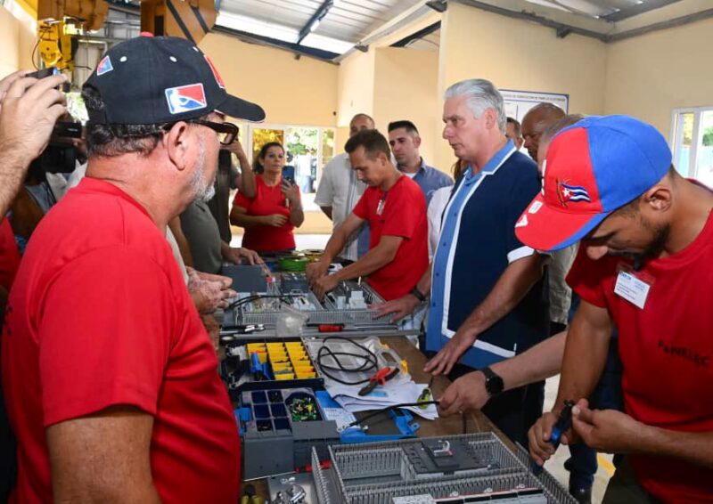 El presidente y el primer ministro conocieron también de la experiencia de la mipymes estatal Panelec, dedicada a la fabricación de paneles eléctricos, donde con apenas 21 trabajadores con sus producciones logran ahorrar hasta un 50 por ciento en el costo con respecto a los paneles solares importados.