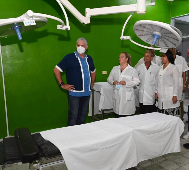 Durante su periplo por Sancti Spíritus el presidente Díaz-Canel visitó el hospital provincial pediátrico José Martí donde se ejecuta un amplio programa de inversiones a un costo de más de 40 millones de pesos para mejorar las áreas de atención médica, en particular la unidad quirúrgica donde se realizó una profunda remodelación.