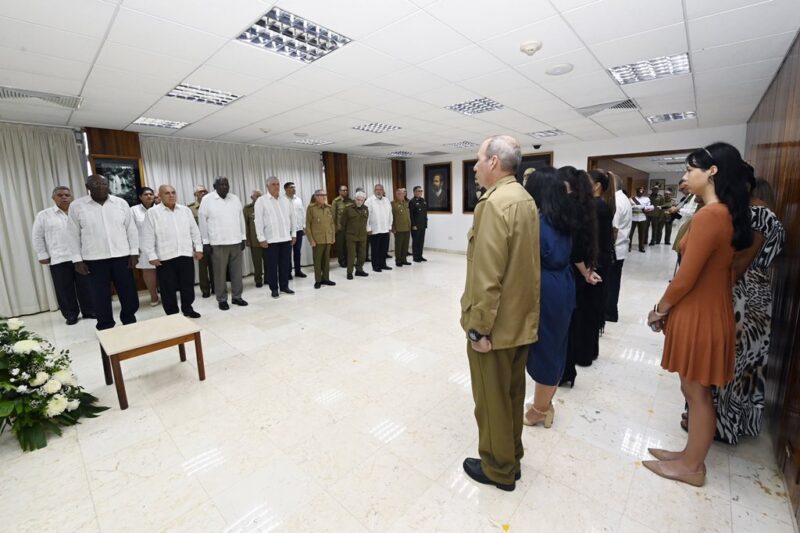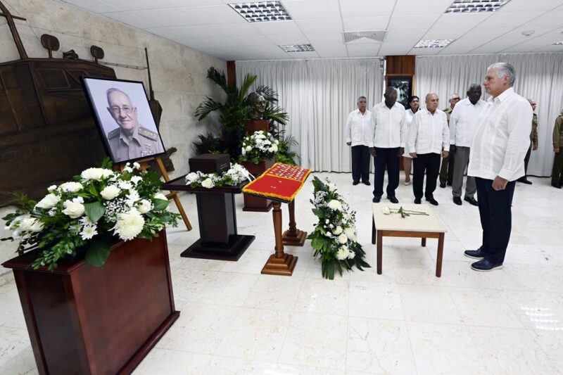 La Habana, Cuba. – El líder de la Revolución Cubana, general de ejército Raúl Castro y el secretario general del Partido Comunista de Cuba y presidente de la República, Miguel Díaz-Canel rindieron tributo este sábado al general de cuerpo de ejército, Ramón Espinosa Martín, fallecido en fecha reciente de manera inesperada.