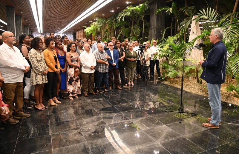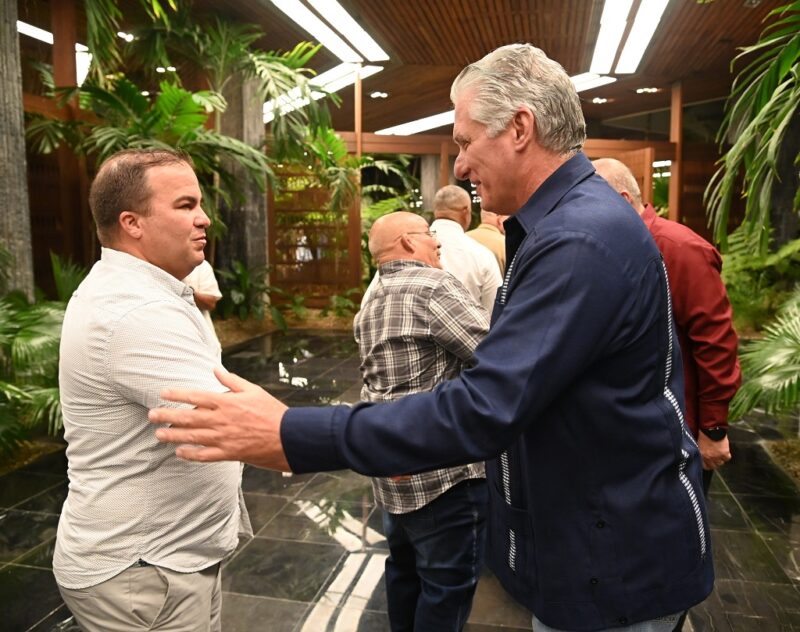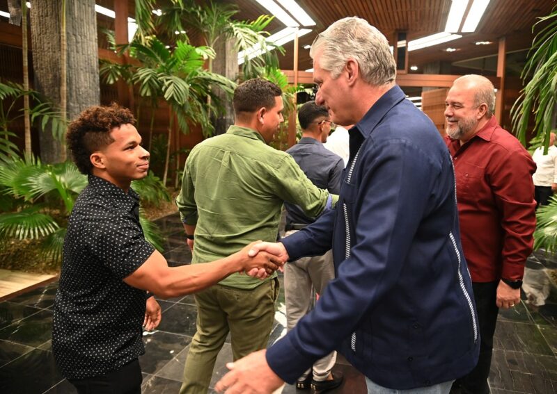 En el Palacio de la Revolución, junto al primer ministro Manuel Marrero Cruz, y otros dirigentes del Partido, el Estado y el Gobierno, el presidente Díaz-Canel abrazó a los atletas, a los entrenadores, a comisionados de las disciplinas que obtuvieron medallas y a glorias deportivas.