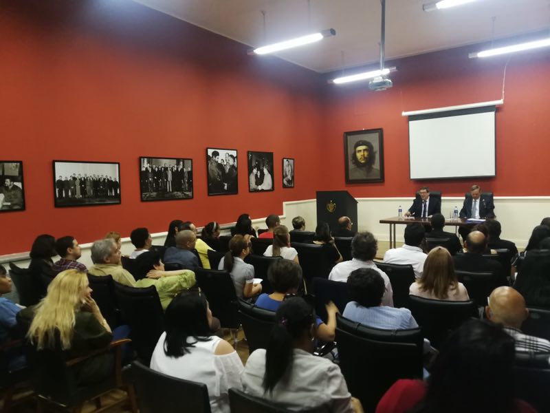 El canciller se reunió con miembros de la misión estatal y respondió inquietudes respecto al panorama dentro y fuera de la nación antillana a raíz del reforzamiento del bloqueo con la activación del Título III de la ley Helms-Burton.