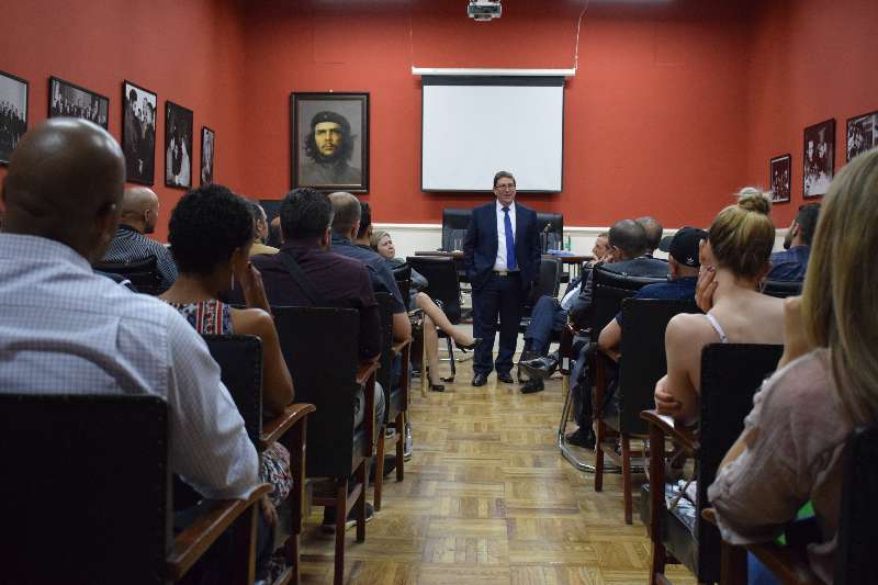 El canciller se reunió con miembros de la misión estatal y respondió inquietudes respecto al panorama dentro y fuera de la nación antillana a raíz del reforzamiento del bloqueo con la activación del Título III de la ley Helms-Burton.