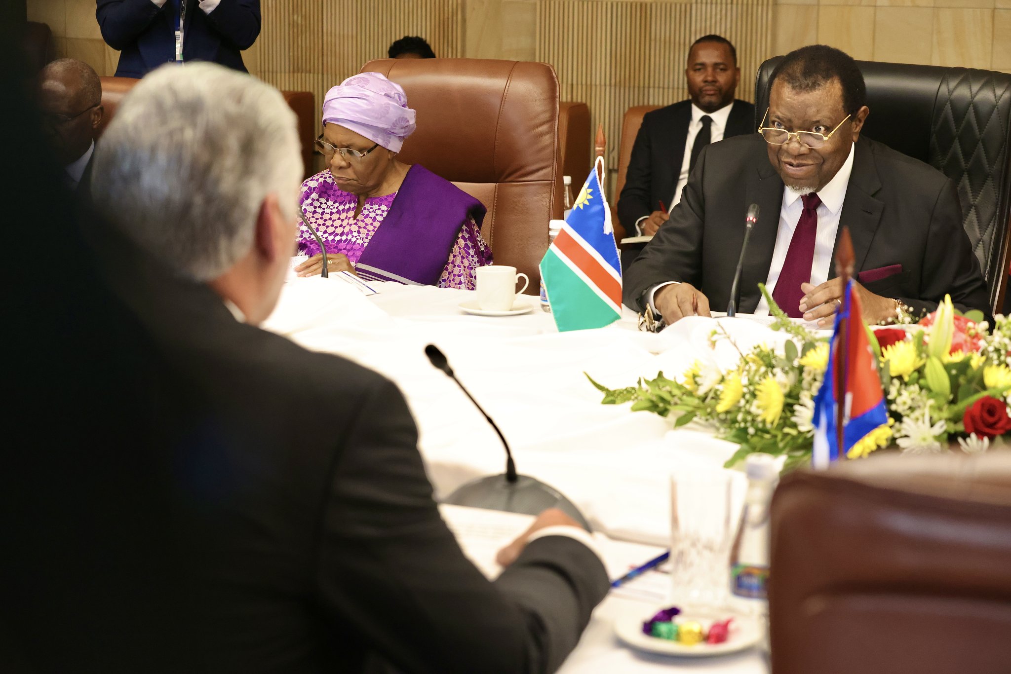 Durante las conversaciones Geingob recordó los lazos históricos que unen a ambos pueblos; resaltó la actual cooperación de especialistas cubanos en Namibia, y denunció el bloqueo contra Cuba.