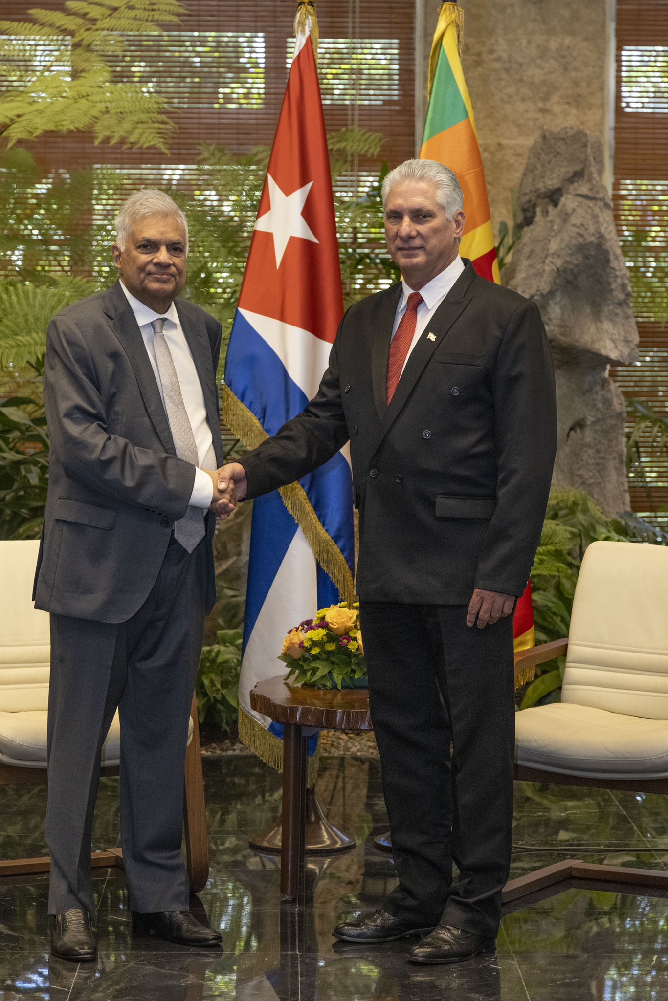 La Habana, Cuba. – El presidente de la República de Cuba, Miguel Díaz-Canel Bermúdez recibió este jueves, al Excmo. Sr. Ranil Wickremesinghe, presidente de la República Democrática Socialista de Sri Lanka, quien se encuentra en nuestro país para participar en la Cumbre del Grupo de los 77 y China.