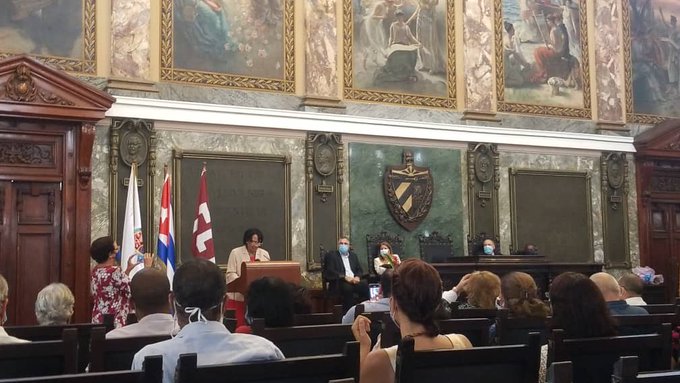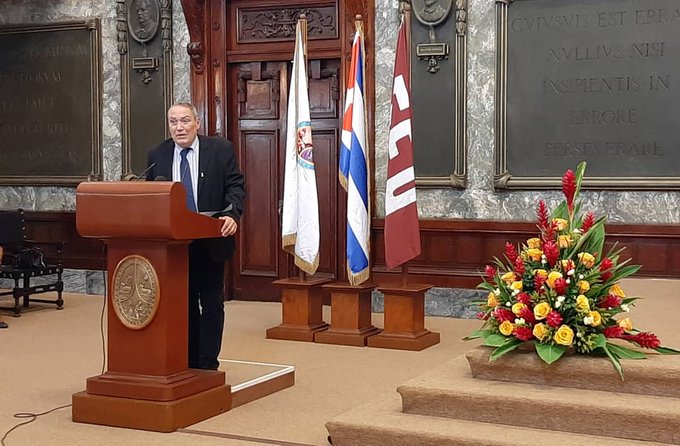 Desde el Aula Magna elogió la labor de acompañamiento de los jóvenes en la creación de los proyectos de vacunas nacionales anti-Covid-19E, Soberana 01, Soberana 02 y Soberana Plus, desarrolladas por el Instituto Finlay de Vacunas, el cual dirige en la actualidad.