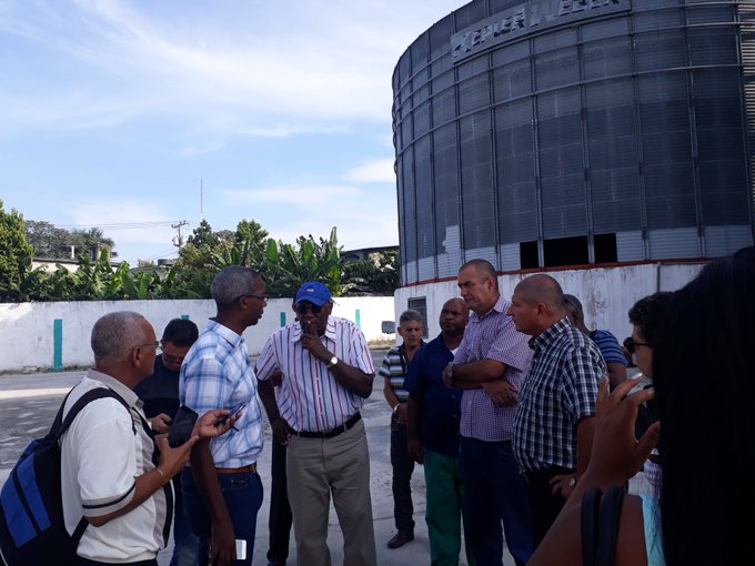 La Habana, Cuba. – Salvador Valdés Mesa, primer Vicepresidente de los Consejos de Estado y de Ministros, chequeó la marcha del mantenimiento que se lleva a cabo en la Posición de Silos Hacendado, en La Habana, proceso que favorecerá el almacenamiento del maíz destinado al alimento animal.