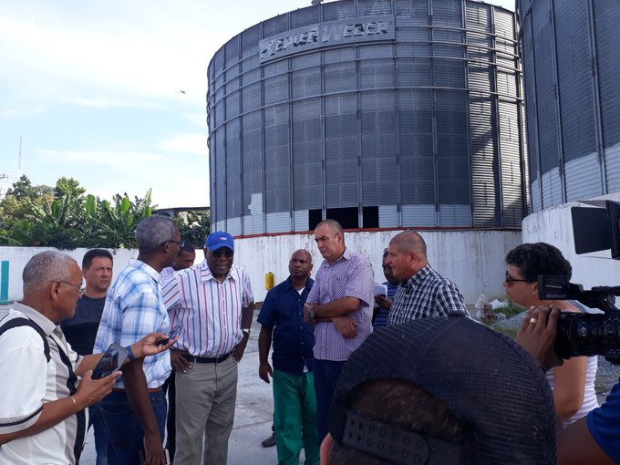 El Primer vicepresidente cubano, Salvador Valdés Mesa, dialogó con René Reyes, director general de la Empresa de Transporte de Alimentos a Granel, cuya misión fundamental es la descarga de los buques graneleros que llegan al territorio nacional, el abastecimiento a las fábricas de pienso y el llenado de los silos de la reserva.