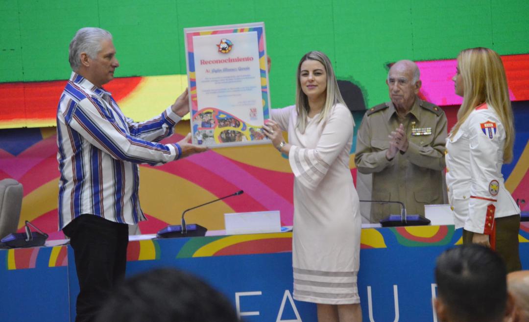 En la clausura del XII Congreso juvenil, se reconoció el trabajo y la entrega a la organización de Aylín Álvarez, quien fue promovida al trabajo en el Partido.