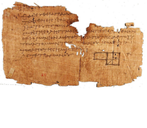 Fragmento de Los elementos de Euclides, escrito en papiro, hallado en el yacimiento de Oxirrinco (Egipto)