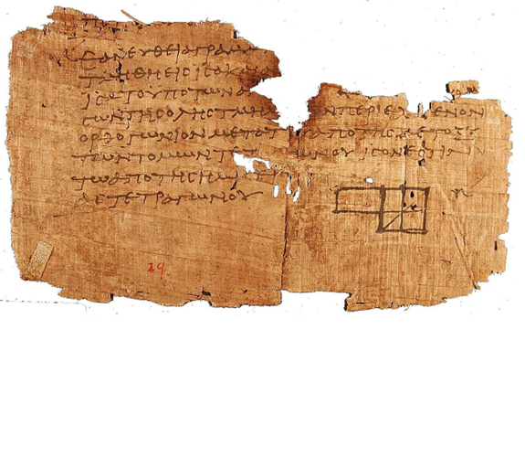 Fragmento de Los elementos de Euclides, escrito en papiro, hallado en el yacimiento de Oxirrinco (Egipto)