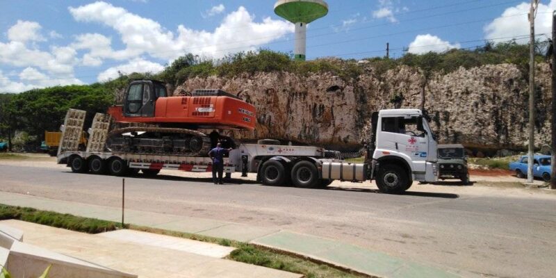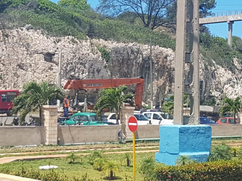 La maquinaria perteneciente a la Empresa de Materias Primas de La Habana se acopla en el lugar de los trabajos lo que permitirá concretar el rescate de Frank Montero Pita, el último trabajador atrapado en la chimenea mientras se acometen labores de limpieza.