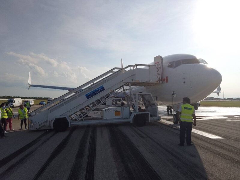 Los clientes del vuelo de la aerolínea Sunwing reciben atención del sistema del turismo en Matanzas tras un aterrizaje de emergencia en el Aeropuerto Internacional Juan Gualberto Gómez, aseguró la subdelegada de ese ministerio, Ibia Betancourt.