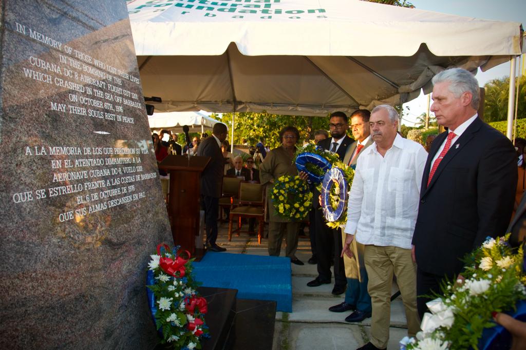 Holetown, Barbados. – El presidente cubano, Miguel Díaz-Canel, así como Jefes de Estado y de Gobierno de la Comunidad del Caribe rindieron homenaje a las víctimas del atentado terrorista contra el avión de cubana el 6 de octubre de 1976.