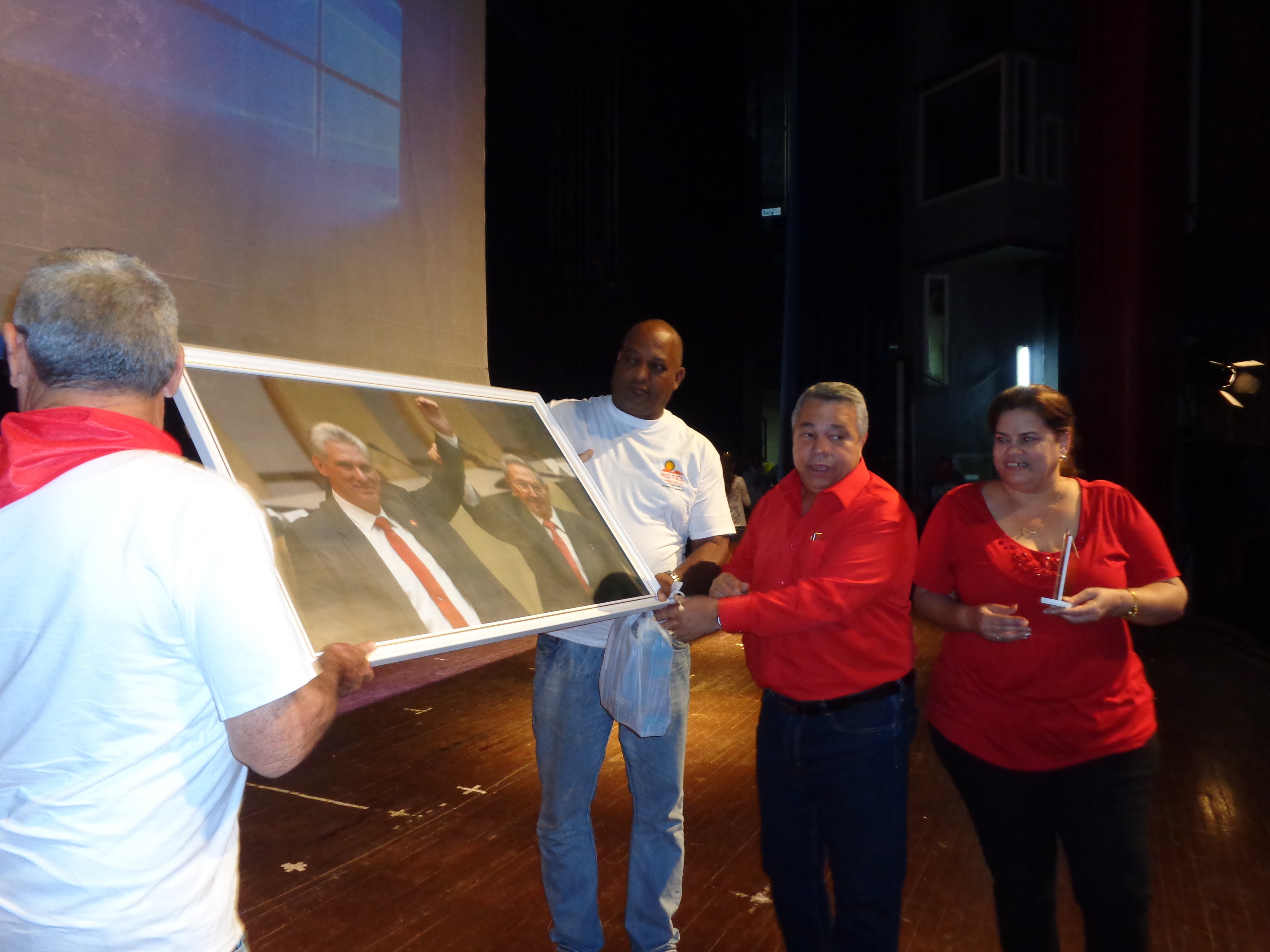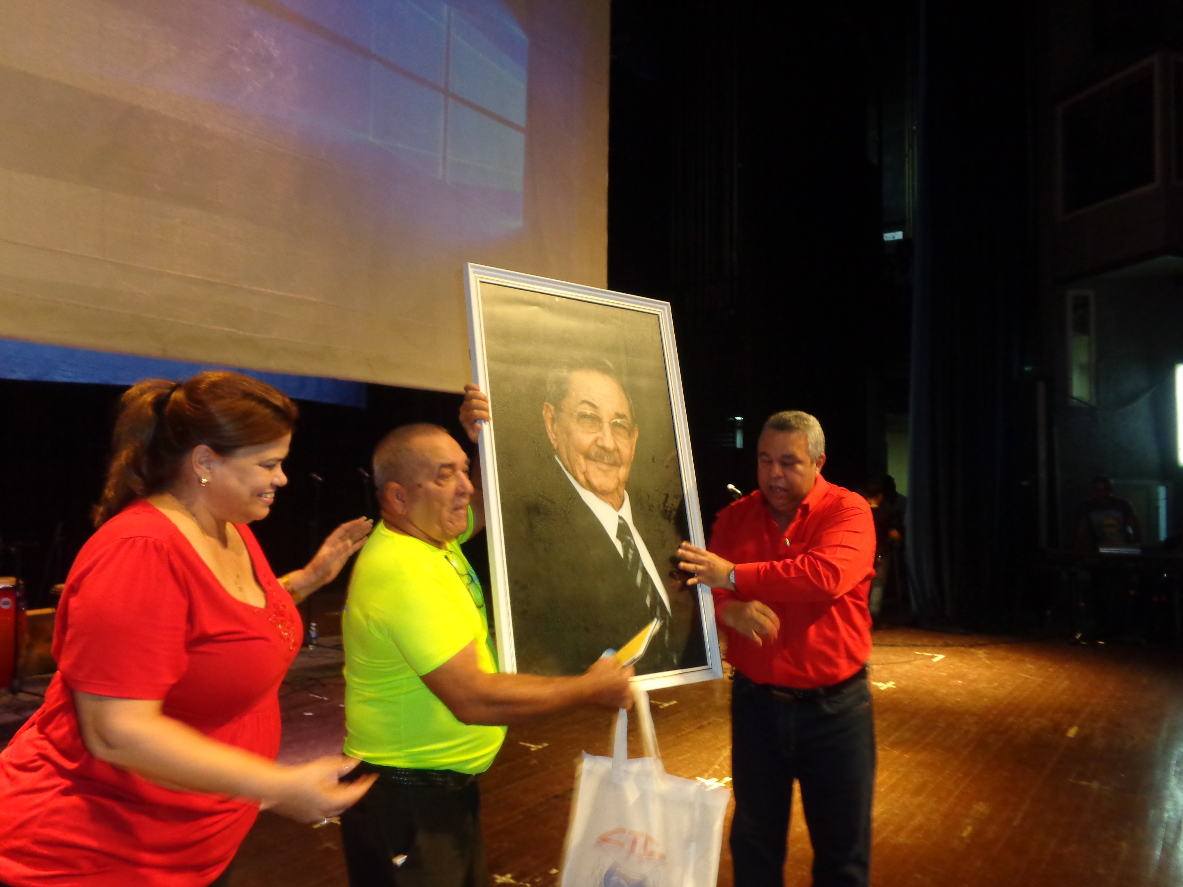 Afiliados a los diferentes sindicatos y dependencias de la Central de Trabajadores de Cuba, CTC, se concentraron en el teatro Lázaro Peña de la Central de Trabajadores de Cuba, para expresar con alegría el cumplimiento del deber cumplido durante el año.