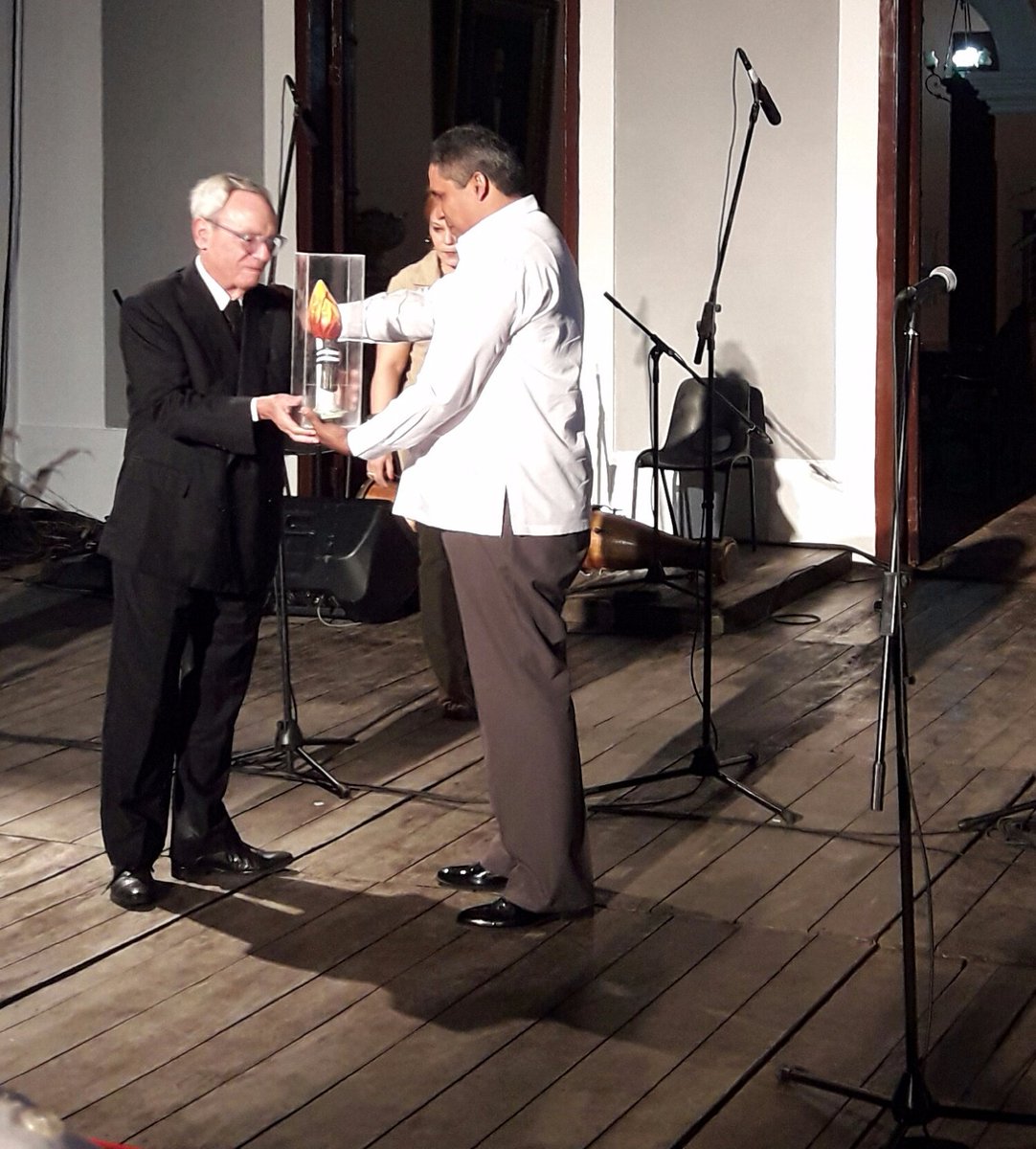 En el tributo al Padre de la Patria, el Doctor Eusebio Leal recibió la Tea Incendiaria y la réplica de la Campana del Ingenio Demajagua, símbolos de Bayamo y Granma.