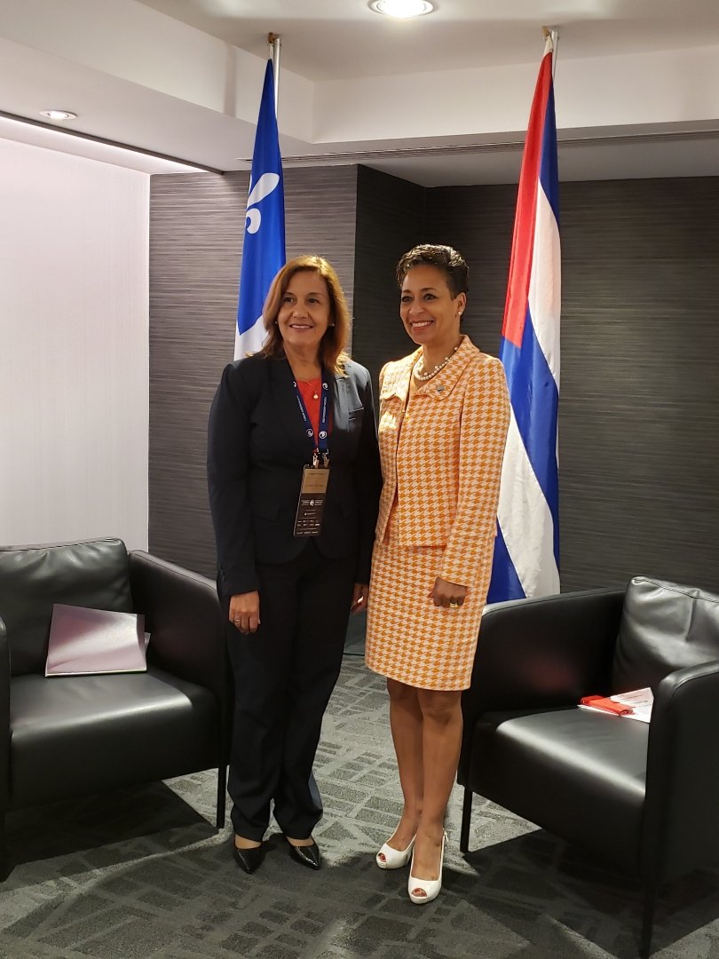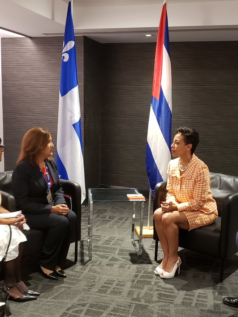 Elba Rosa Pérez Montoya, ministra de Ciencia, Tecnología y Medio Ambiente de Cuba, sostuvo un encuentro en Canadá con Nadine Girault, titular de Relaciones Internacionales y la Francofonía de Québec.