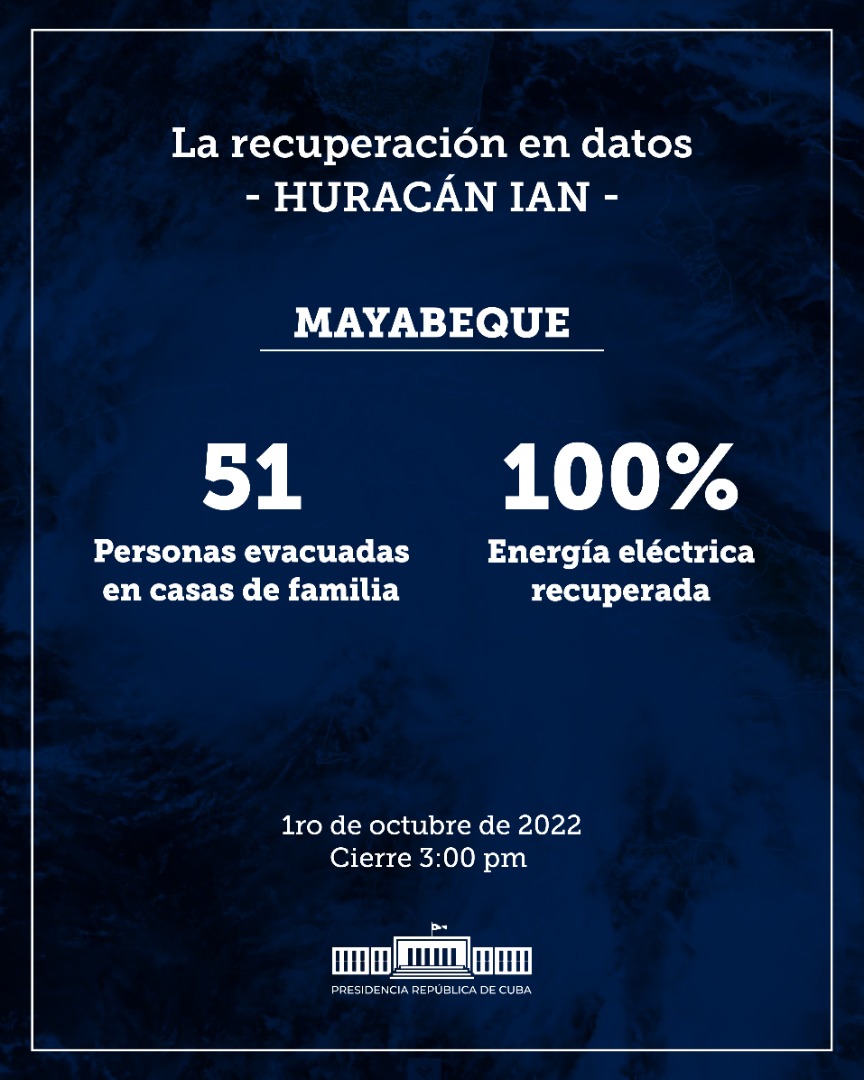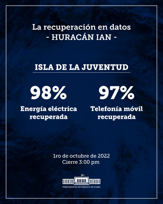 La Habana, Cuba. – Desde el despacho nacional de carga de la Unión Eléctrica (UNE), su director, el ingeniero Pavel Angulo Peña, subrayó este sábado que la Isla de la Juventud y Mayabeque comenzaron la última etapa recuperativa.