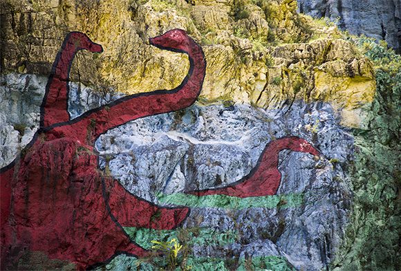 En la pintura se observa el proceso evolutivo del hombre y de los animales en la Sierra de los Órganos; pues enmarca a los indios guanahatabeyes, especies de mamíferos, animales gigantescos, y algunos moluscos. En el valle, varias cuevas alcanzan 300 metros de extensión, y por su interior corre un río subterráneo.